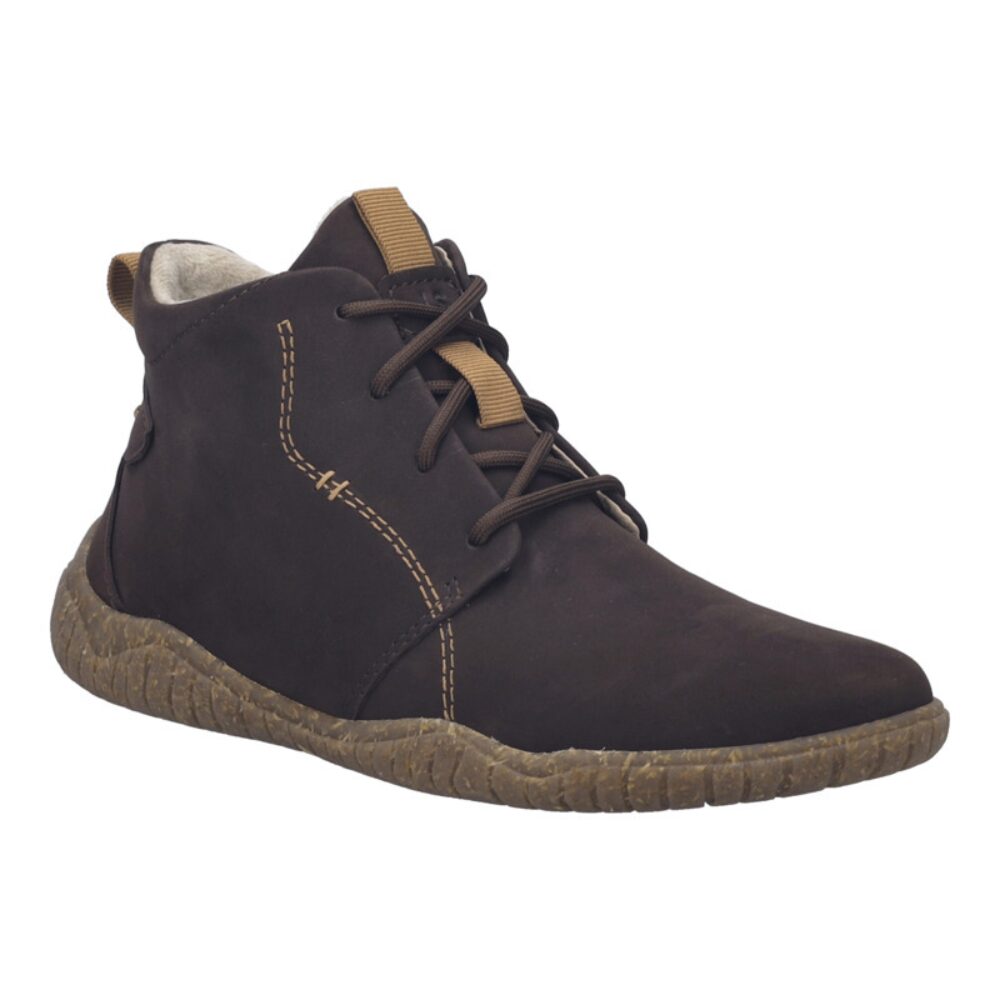 Die Damenstiefelette Wynona 05 von JOSEF SEIBEL vereint charakterstarkes Design mit traditioneller Handnaht. Gefertigt aus hochwertigem Rindsleder und warm gefüttert mit Textil, bietet sie optimalen Tragekomfort für kalte Wintertage. Die strapazierfähige Gummisohle sorgt für exzellenten Grip und Rutschfestigkeit, ideal für Outdoor-Abenteuer und Freizeitaktivitäten. Dank der herausnehmbaren Innensohle kannst du dein eigenes Fußbett verwenden. Die Schnürung ermöglicht eine individuelle Passform. Als Teil der Spirit of Nature Kollektion steht dieser Schuh für Slow Fashion und nachhaltige Qualität. Perfekt für Casualmode und alltagstauglich, begleitet er dich stilvoll durch den Winter.